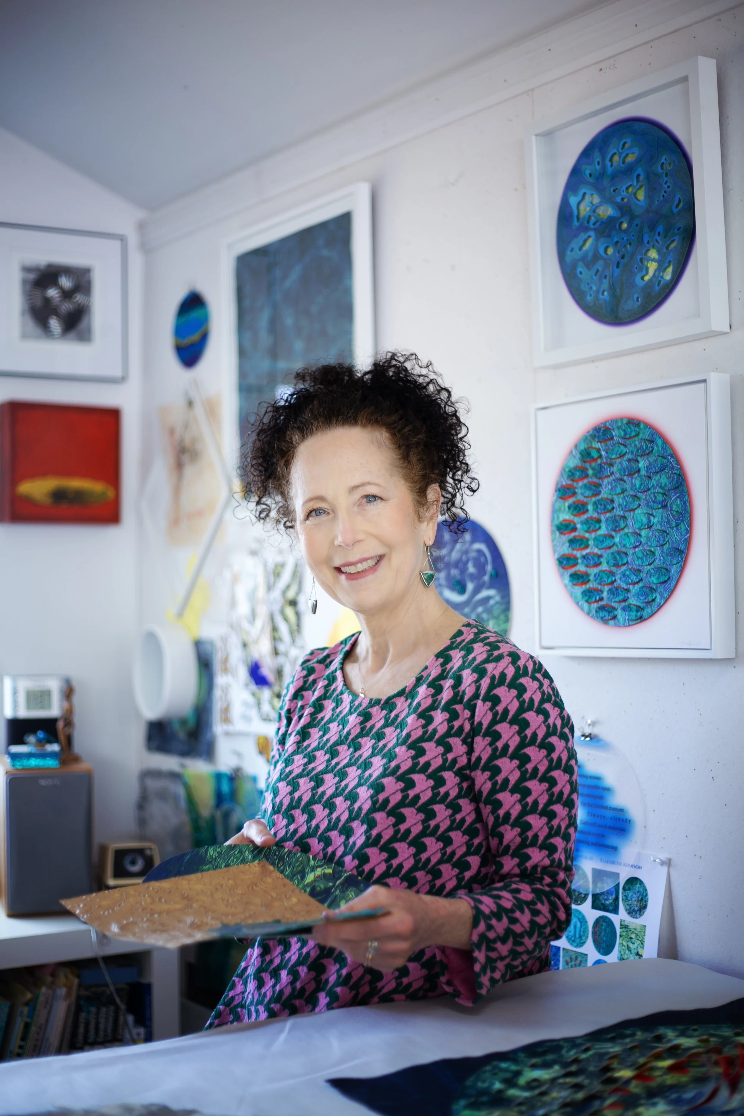 Elizabeth daily records images on her walks transforming them into Mandalas of ‘the one… the universe.’ Her work ranges from examining California’s waterways, native flora, and environmental equity to pondering consistency in nature’s forms and the cosmos. Elizabeth has exhibited throughout the West Coast and nationally.